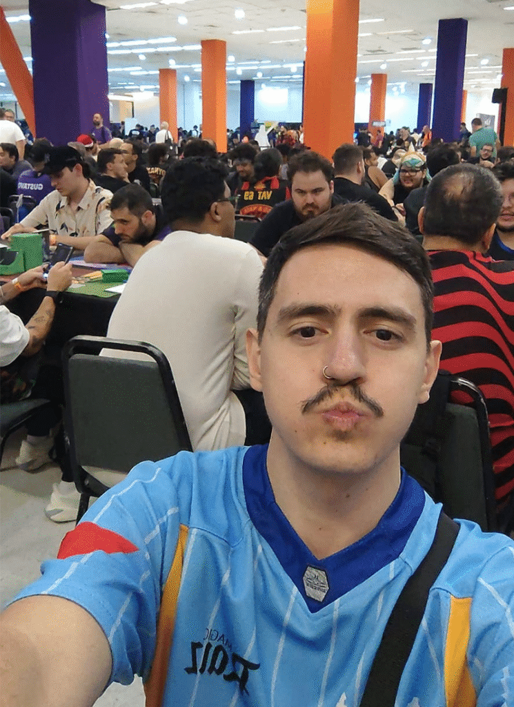 Saí desolado e um filme passou pela minha cabeça, imaginando que novamente eu bateria na trave. Mesmo não sendo molzeiro, tendo um petdeck, sou um player competitivo, busquei no campeonato usufruir ao máximo da minha skill e conhecimento do jogo, sem sideguide, sem estudo, sem jogar com o baralho. Eu não tinha nada, mas tinha o povo. Quando o Filipe “Primo” perguntou lá fora quanto eu estava meti logo o “ah, tô 6-1…” mais borocoxô do universo. Tomei logo um chacoalhão “ACORDA, PORRA, VOCÊ TÁ 6-1”.